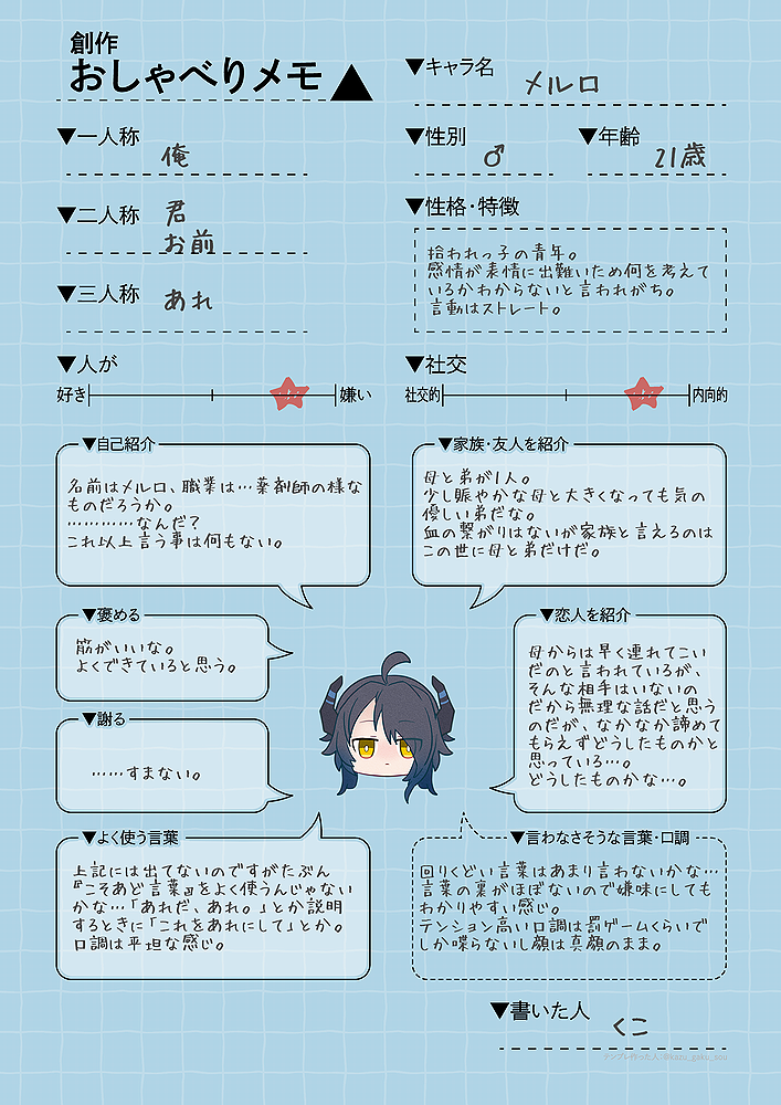 感情が表情に出づらい為何を考えているかよくわからないと思われるが そんな時は大体何も考えていない。飯の献立とか考えてる。