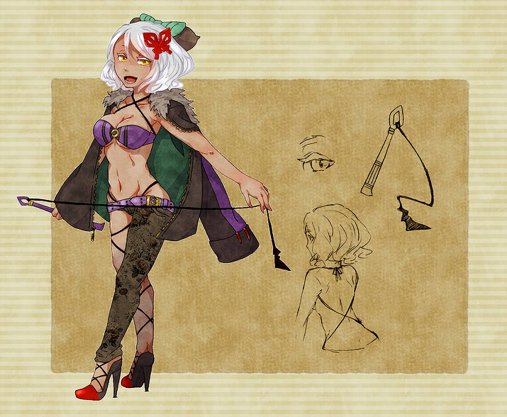 一座では鞭を使った芸と、アリエラと共に歌を担当している。