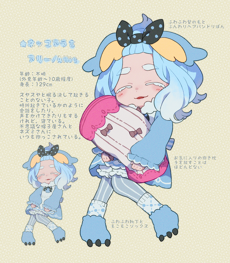 不思議な帽子屋さんとネズミさんにいつもだっこされてお茶会へやってくる。