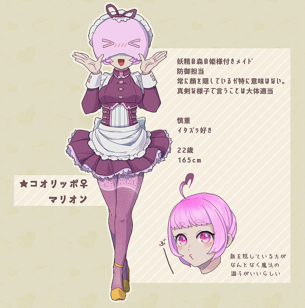 常に被り物をして顔を隠しているが特に深い意味はない。強いて言うならちょっと彼女の調子が良くなるらしい。